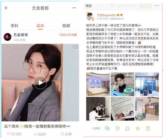 知道自己的小哥哥要做手术,粉丝们强烈要求围观!所以尤金哥哥在5月19日手术当天,在自己的微博和“一直播”平台上全程直播了自己的摘镜经历,错过直播的小伙伴可以扫码收看回放哦~