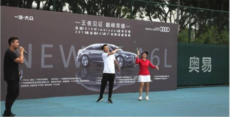 接下来,广州奥迪经销商代表-广州晨峰奥迪市场总监肖晓通与Winnie女士一同为本次比赛进行了开球仪式。