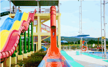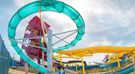 拥有全国首个大回环太空盘,是一个大回环滑梯与太空盘的完美结合项目。整个项目采用半透明玻璃钢材料,游客置身于紧闭的发射舱内,随着3·2·1的倒数,脚底踏板打开,从19米高的平台上通过水的润滑作用,身体如同坐过山车般,沿着几近垂直的滑管高速滑行。另外,还配有彩虹滑梯、亲子滑梯、趣味大翻桶、风水轮、旋转托盘等经典水上设备。