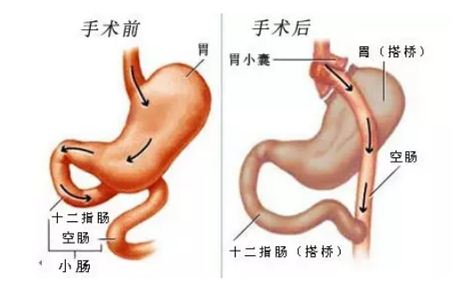 胃旁路手术的过程是通过重建消化道,减少身体对糖分的吸收同时也改变了肠-胰岛轴激素的分泌,改善了身体的糖代谢。在减肥的同时也达到治疗糖尿病的效果,一举两得。