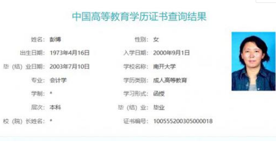 彭博:按说人事档案应该记载最终学历,我2003年南开大学毕业(记者查证,系函授形式),2018年获得青岛大学工商管理专业硕士学位。