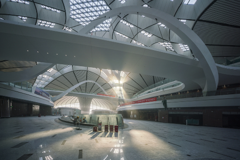 大兴国际机场航站楼采用了最先进的国内出发/到达混流设计。借助航站楼、停车楼、轨道交通、行车道等组成完善的零距离换乘综合交通枢纽,旅客出站后步行1-2分钟内即可在B1层办理国内值机、行李托运和安检,流程简洁,实现无缝垂直换乘。