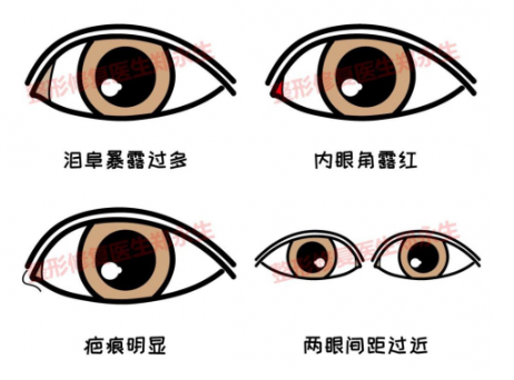 内眦开大术术后效果与医生的技术、术前设计、术前沟通等多方面都有关系,如果手术效果不好,则可能出现以下情况。