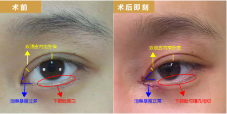 眼角开的过大,可能出现泪阜暴露过多的情况,眼角虽然打开了,但是整体神态可能会出现另一种效果,这个时候我们就需要采取手术的方式进行修复,对暴露过多的泪阜进行部分遮挡。