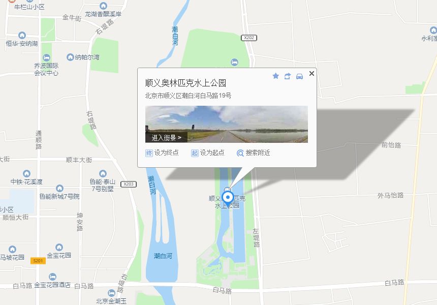 3.北京出发:行车至京顺路直行,至京顺路马坡路口右转后直行即可到达顺义奥林匹克水上公园。