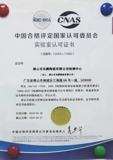 对此,东鹏一直以来都严守制造“质量门”。为了确保质量监控的独立性和资源的获取,东鹏专门设立了品质管理部。同时,东鹏还斥巨资投入公司检测中心建设,并于2018年通过中国合格评定、中国认可委员会认可,获得了“CNAS国家实验室认可”证书,成为行业首家全面开展陶瓷项目检测的国家级实验室。
