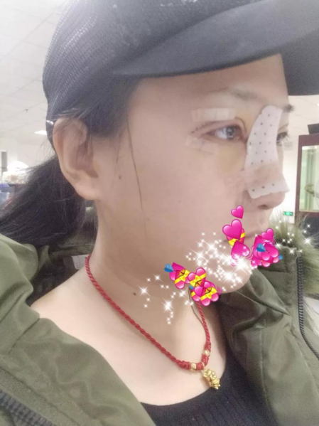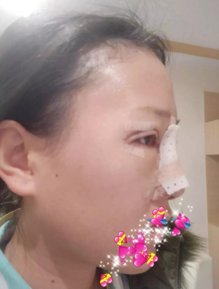 术后第一天:“可以明显看到我终于不是眯着眼睛看世界了,鼻子也有轮廓感,第一天毕竟有点肿,还是等消肿看看吧~”