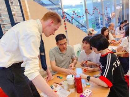 随后学员们正式开启游戏环节。第一个游戏是潮汕地区经典的筛子游戏Hoo Hey How。学员们通过猜筛子的数字和动物来“下注”,以此来为团队赢得“筹码”。将中心气氛推向高潮的是Over and Under纸牌游戏。期间有学员尝试将所有“筹码”一次参与其中,也有学员经过仔细估算,规划好没轮的“筹码”量。Alex老师表示这其中既包含了运气,也蕴含着投资、金融的技巧。