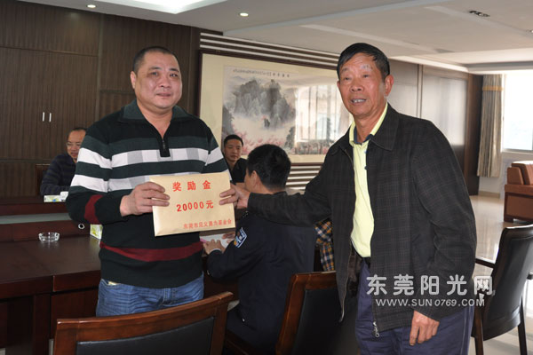 罗炳锐(左)获得东莞市见义勇为基金2万元奖励。
