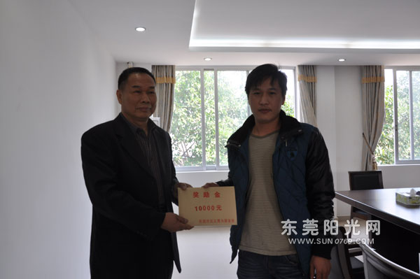 3月24日上午,东莞市见义勇为基金会来到麻涌,向勇救落水者的罗炳锐、钟志杨二人分别送上2万元和1万元的奖励金。