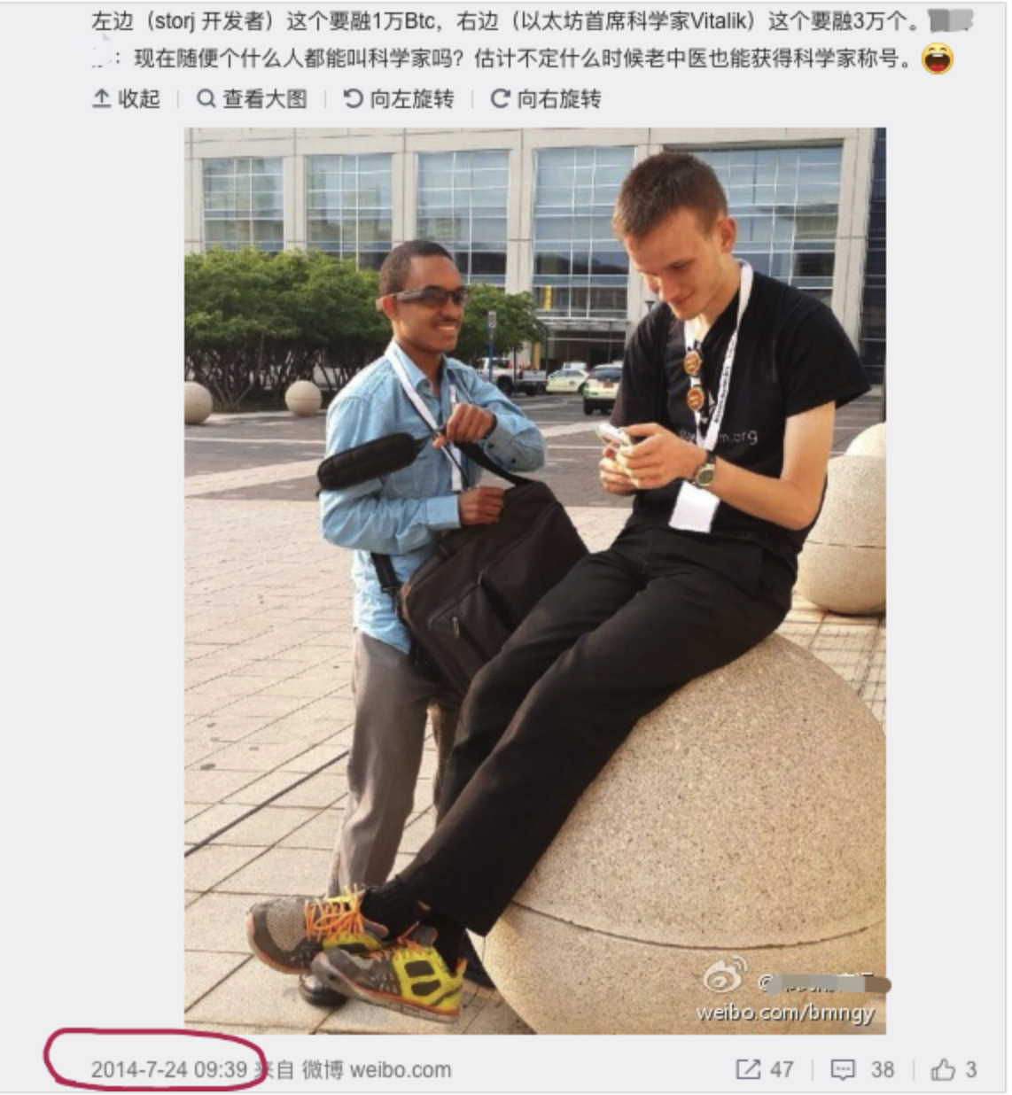 后来呢,融资就必须得来当时市场最火热的中国了。V神作为天才少年,中文是没问题的,他只花了几个月的时间就自学了中文。当时的V神来到中国,国人们是怎么看待这个神童的呢,