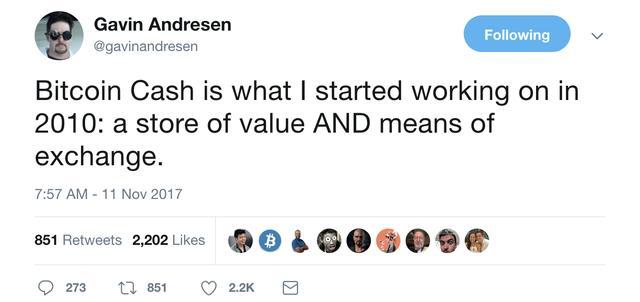 而后,他更是直接公开宣称"BCH是我从2010年一直以来一直在为之工作的那个比特币”