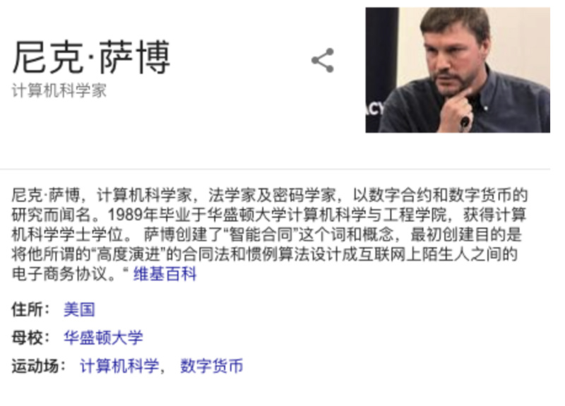 尼克萨博是智能合约的创始人,同时是密码朋克的主要参与者,在密码学和自由主义社区里的地位是极高的,同时,他也是V神的偶像。