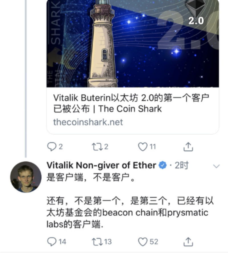 另外多提一句, V神中文一直也挺好,推特上着急了也会直接发中文怼中文用户: