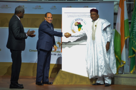 非洲联盟非洲大陆自由贸易区特别峰会7日在尼日尔首都尼亚美开幕,会议正式宣布非洲大陆自贸区成立。非洲大陆自贸区协议已于5月30日正式生效。截至目前,非盟55个成员中,除厄立特里亚外,54个成员已签署协议,其中27个成员按本国相关法律程序批准协议后向非盟委员会递交了协议批准书。(来源: 经济参考报)