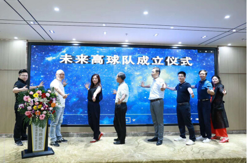 在未来家首席构架师王旭川、贵州聚能艾佳电器有限公司董事长郭凌宏、一带一路企业家高尔夫俱乐部执行会长鄢淑萍、长江华商高尔夫创队队长韩锡友、武大楚商学院创始院长李琦、未来将控股公司飞总、未来高球队执行队长危正龙、未来家深圳会客厅发起人郭光琼以及现场嘉宾的共同见证下,未来高球队正式成立。