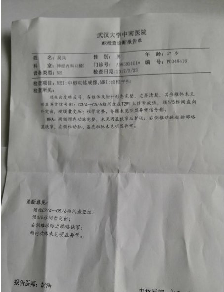 我是武汉武昌的一个IT行业的工作者,名叫吴兵,今年37了。比较年轻的时候,身体一直很好,在外务工从未意识过要保护颈椎,也从没有想过40不到会有颈椎病。