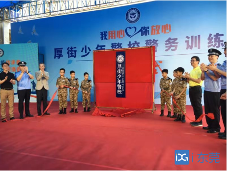 最后,全体参会领导和“少年警苗”共同为厚街镇少年警校总校揭牌,宣布厚街少年警校警务训练营正式启动。