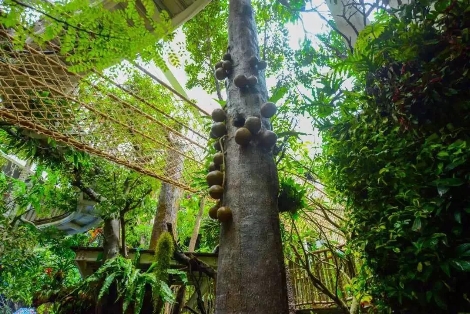 据了解,雨林生态植物园总面积约15000平方米,分为两层室内雨林。这里分成八大展区:自然中心、空中花园、湿地探秘、精灵剧场、森林奇遇、雨林探险、多肉森林以及沙漠畅想;同时涵盖了几百种来自亚洲、南美洲以及非洲的特色热带雨林植物,各种形态的多肉植物、炮弹树、跳舞草等,更有猴面包树、铁西瓜、神秘果等罕见植物,共同形成独特的热带雨林景观。