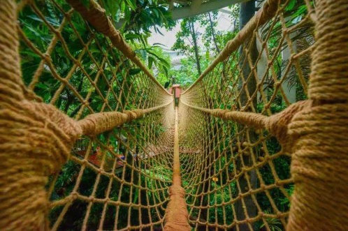 正是设计师丰富大胆的想象力,把森林冒险藏在喧嚣的城市中心。穿越在正佳雨林生态植物园,如同化身爱丽丝穿梭在神秘的雨林中,追寻神秘雨林探索之旅。这个夏日与好友躲进正佳雨林生态植物园,来一场惊心动魄的夏日冒险之旅。