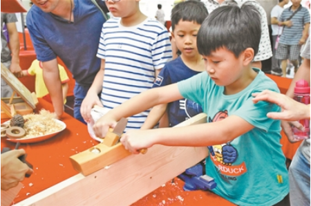 在去年的技能分享大会上,木工体验特别受欢迎。今年,这一项目依旧保留。(来源:广州日报)