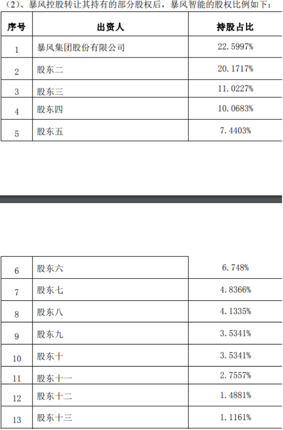 (2)、暴风控股转让其持有的部分股权后,暴风智能的股权比例如下: