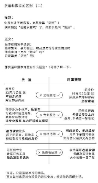 自如搬家与普通货运对比表