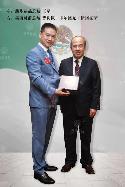 慈华臻品作为国礼在此次会议中赠予墨西哥前总统费利佩·卡尔德龙·伊诺霍萨,慈华臻品走出国门这一举措,不但促进了各国关系和平发展与良好交流,宣传了中国古代历史与文化,更是慈华臻品为我国民族企业产品质量,产业文化以及民族企业名片面向世界做出了进一步地宣传与推进。是慈华臻品的骄傲,更是中国制造的荣耀。