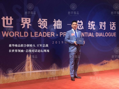 2019第二届新丝路对话总统论坛2019年8月10日在中国·北京盛大召开,各国前国家首脑和政府元首就“新丝路”、“新机遇”、“新商机”进行文化与经济的对话,同时大会邀请到知名新闻媒体20余家现场进行实时报道与知名企业家200余位。慈华臻品作为中国无损健康养护行业的倡导品牌受到主办方的邀请,联合创始人王军总裁代表出席此次会议。慈华臻品将旗下产品作为“国礼”赠予现场世界领袖,这意味着慈华臻品不仅是走出国门的中国产品,更是高贵优质的中国礼品。