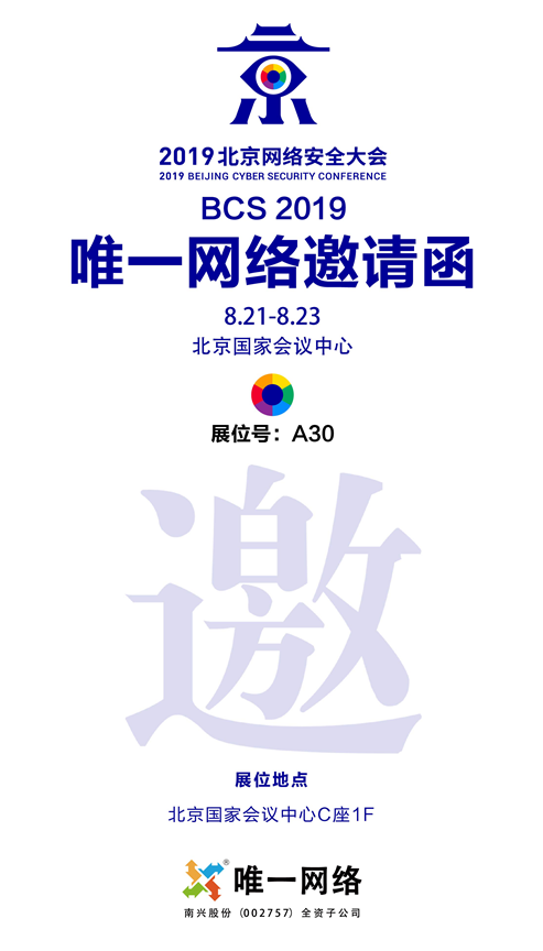 2019年8月21日至23日,超千位全球的政要、顶级信息安全专家、各行业IT决策者以及学术界的领军人物齐聚北京,共同参与2019北京网络安全大会,唯一网络作为国内知名的云服务综合解决方案提供商也应邀出席。