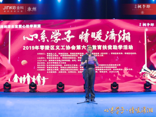 本次活动,由零陵区政协潇湘源云宝爱心助学联盟和中国企业500强金科地产集团永州公司项目金科·桃李郡作为总冠名,大力支持了本次助学活动。晚会共收到来自28个企事业单位和个人的爱心助学款共10余万元,48名贫困学子受资助,为受助学生发放2000元助学金,作为贫困学生下学期的学费及生活费。活动现场还为28家爱心企事业单位和个人颁发了爱心牌匾。
