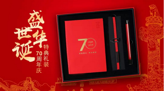 WILLINGHORSE倾力推出70周年盛世华诞套装礼盒,内含笔记本,红色绑带移动金属书签,磨砂金属签字笔。笔记本礼品正面利用了烫金设计,丝印有新中国成立70周年的logo精美图案,红色绑带移动金属书签,与封面的70祖国成立周年的烫金设计浑然一体,让您共享祖国庆典。