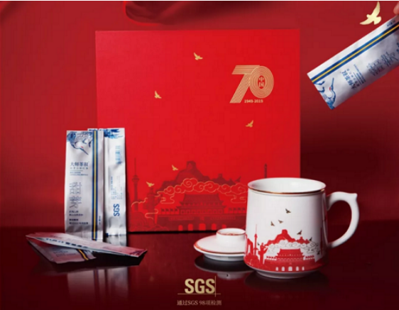 瓷器与茶叶,都是中华文明的象征,颇具代表性。这套大师茶叙套装内含70周年景德镇定制高士杯和武夷山脉小钟红茶。高士杯将21项代表性主题元素有机融合,方寸之间展现新中国70年沧桑巨变。潘淳灯老师30年专注小种红茶制作技艺,甜芽小种红茶是老师的代表作,用一杯珍贵好茶,致敬祖国70周年重要时刻。