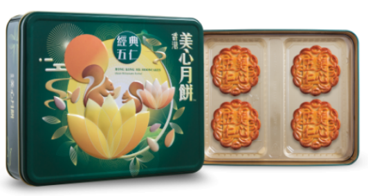 香港美心月饼(Hong Kong MX Mooncakes) 秉承优良传统,持续推出经典传统的“陈皮豆沙月饼”和“双黄豆沙月饼”,以及最有情怀,也最值得回忆的“经典五仁月饼”带给您一份儿时的味道。