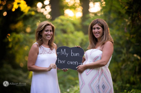 艾莉森的双胞胎妹妹道恩知道此事后,非常心疼姐姐,并决定为姐姐代孕,帮姐姐实现多年的愿望,这让艾莉森非常感动。前不久,道恩更晒出和姐姐的合照,照片中她挺着大肚,和艾莉森站在一起,拿着一块小黑板,黑板写到“我的面包,她的烤箱”,很是温馨。这张照片也受了众多网友的追捧。