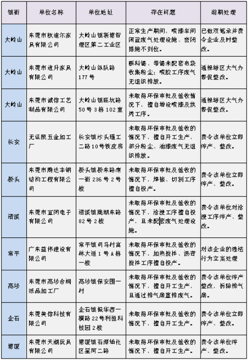 东莞通报新一批未落实大气污染防治措施的企业和工地名单