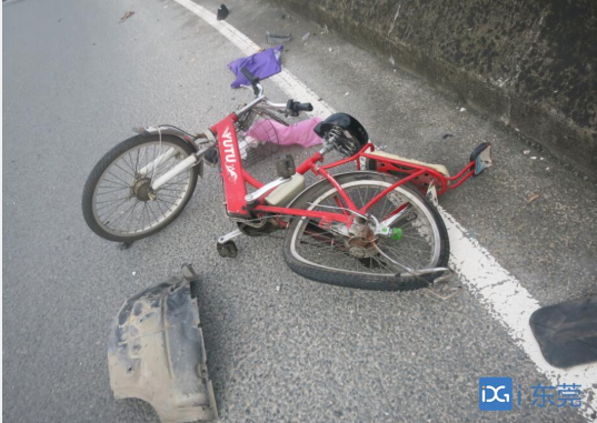 近日,东莞黄江镇发生一起交通事故,小轿车与电动车碰撞后导致电动车司机从高架桥坠落后死亡。