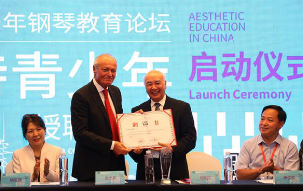 钢琴艺术周活动组委会秘书长黄俭还介绍了在李斯特音乐学院举行的匈牙利“李斯特青少年国际钢琴比赛”和“李斯特青少年国际钢琴大师课程”。本次活动艺术总监德高望重的但昭义教授也为麦杰西总理颁发了“美育中国·李斯特青少年钢琴艺术周”荣誉顾问的聘书。