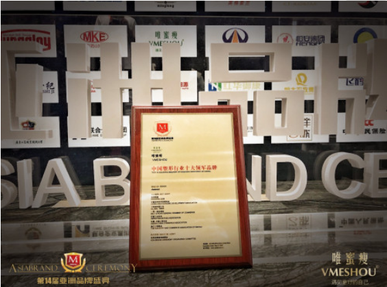 2019年9月9日,由专业品牌金服机构Asiabrand发起,并联合品牌联盟、中国亚洲经济发展协会、一带一路总商会、《环球时报》社、印度工业协会、东盟-中国工商总会和澳门工商联会共同主办的“第14届亚洲品牌盛典”在深圳三诺智慧大厦隆重开幕,湖南旻一生物科技有限公司旗下健康塑形品牌VMESHOU(唯蜜瘦)在本次亚洲品牌盛典中斩获“中国塑形行业十大领军品牌”殊荣,湖南旻一生物科技有限公司董事长李博之受邀出席。