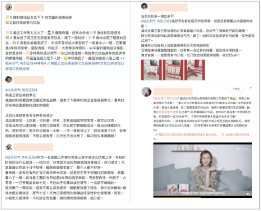 活动前期由运动、美食、生活、美妆四大领域的头部红人进行节奏发起,围绕消费者生活中的养生需求以及健康隐患制作干货满满的图文视频内容,收获了网友们点赞收藏转发的“支持三连”;随后,在各细分圈层中具备相当影响力的达人和KOC轮番上阵,用养生好物种草等方式进一步推高活动的热度。被种草率最高的正官庄高丽参元以及红参饮品系列也获得了抖音、小红书众多博主的一直好评,纷纷化身自来水为产品“代言”。