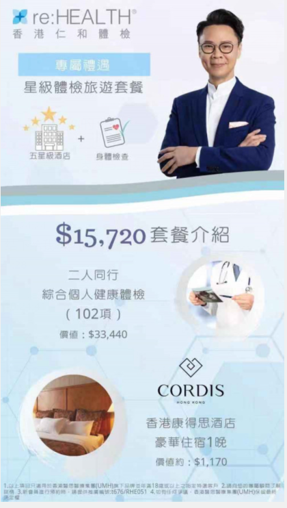价值HK$34610的星级体检旅游套餐