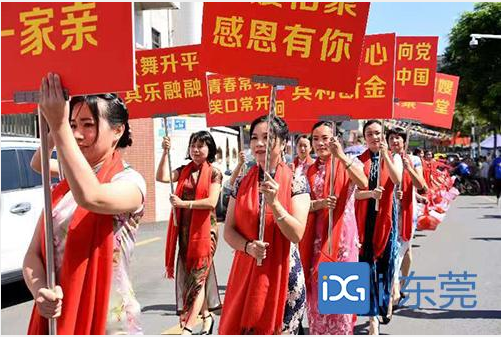 9月22日,厚街赤岭社区大围村举行首届姑嫂宴,200位靓姑靓嫂欢聚一起,共叙家乡情。她们身穿旗袍、手撑黄纸伞、手挑灯笼等,围绕社区的大街小巷巡游“走秀”,还摆出“70”造型庆祝新中国成立70周年,场面热闹壮观,喜庆洋洋。