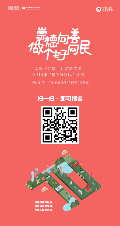 “网聚正能量,礼赞新中国”——2019年“东莞好网民”评选活动于今天(9月26日)正式启动,以庆祝新中国成立70周年为主题,挖掘身边的好网民好故事,网聚东莞好声音,传播东莞正能量。