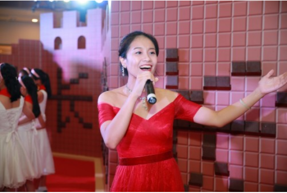 在巧克力“长城”下,乐声悠扬,随着《我和我的祖国》小提琴伴奏的响起,观众的不断加入,女高音歌唱家林嘉颖在巧克力长城烽火台上激情开唱,现场观众挥舞手中的五星红旗,抒发饱满的爱国热情。一曲终了,“长城”下爆发出热烈的掌声,大家齐声高呼“祖国母亲,生日快乐”。