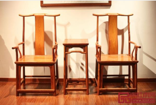 南枝红红木四出头官帽椅三件套 (椅几)