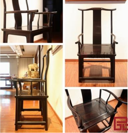 南枝红红木新品出头平切四出头官帽椅,使用两种材质打造,黑酸枝(刀状黑黄檀)及红酸枝(奥氏黄檀)。