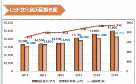 作为亚太地区领先的文化用品贸易平台,诞生于1953年的CSF文化会从计划经济时期开始便已孕育,60余年来与时代同行,经历了中国经济发展从计划到改革开放,从内销到外贸的过程,见证了中国文具产业的革新与变迁,积累了大量的展会经验与丰富的行业资源,今年6月落下帷幕的展会汇聚来自中国、德国、日本、意大利、韩国、法国等十余个国家的品牌共952家参展商,以及来自全球各地45235人次买家,规模更是史无前例,新增一个OE10品牌馆,展出面积更是在2018年4.6万平方米的基础上扩至5万平方米,远超历届,大型展馆助力104个海外品牌同台竞技,一站式的推广服务实现了展销结合,双向互动。展会数据统计,2014-2019年间,展会规模实现平均每年以7%的速度提升,参展的近千家国内外优秀文化用品厂商囊括业界知名企业群英荟萃,共同见证中国文化产业的升级与变革!