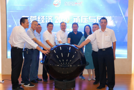 最后,由原市人大常委会副秘书长温淦荣,东莞市政协委员郑金伙,知名生态建筑专家邝成子,东莞市电子计算中心副主任邹润榕,东莞产权中心主任邓锐钊,企鹅新媒体东莞分院院长谭军波,东莞市南粤建筑工程公益服务中心会长、东莞市银盛钢材贸易有限公司董事长向卫忠,东莞市彩丽建筑科技维护有限公司董事长何玉成,中国人保东莞中心支公司党委书记尹志辉与李智勇主编一道按下启动球,宣告2020’东莞经济年会正式启动。至此,东莞经济年会启动仪式圆满结束。