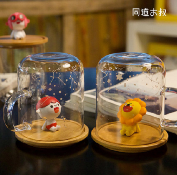 这款同道大叔十二星座仰望星空杯水杯采用实木木盖,搭配可爱的12星座公仔造型,让喝水充满乐趣。杯盖倒放也可作精美的家居装饰,为生活增添趣味。高硼耐热玻璃材质,健康环保。在快乐节奏的生活显得更加动感、前卫。