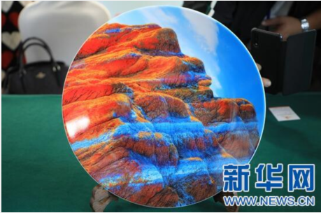 《七彩丹霞》瓷盘。新华网 杨益民 摄